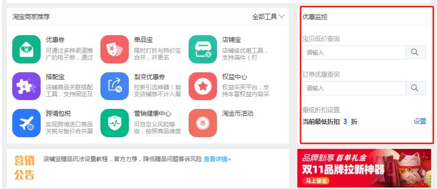 温馨提示:有些卖家在设置折扣的过程中显示不能成功,它显示你的折扣已经低于对低折扣了,这其实是一个实用工具优惠监控,可以监控优惠--防止意外发生