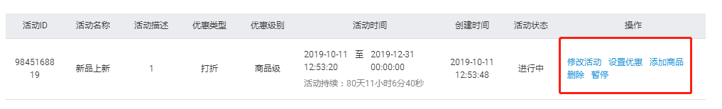 2.根据需要进行活动修改,优惠设置,添加商品等操作