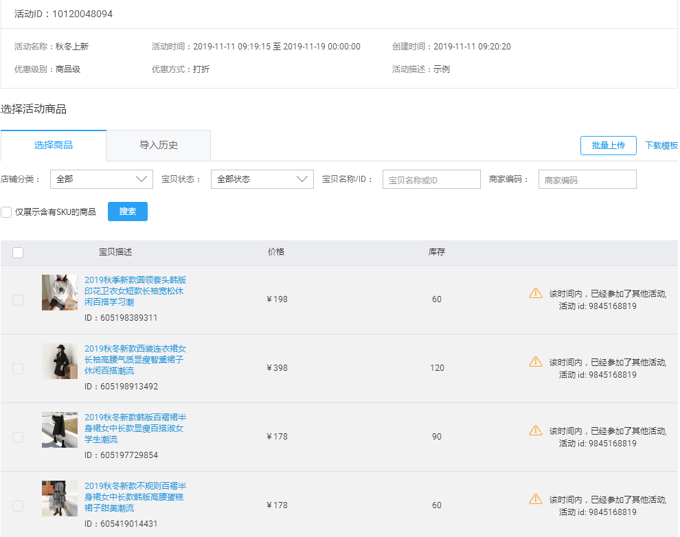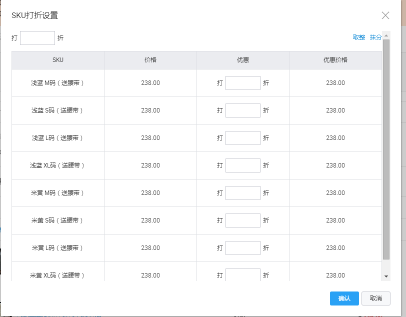 所以说SKU级商品活动可以针对商品不同款设置不同的优惠,而商品级活动商品是默认整个商品所有规格都是一样的折扣