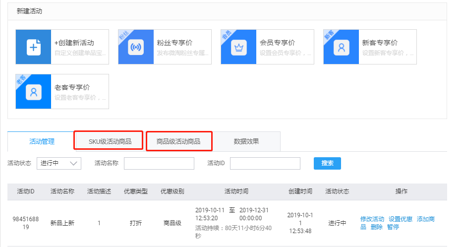 打开单品宝可以看见活动分为sku级和商品级活动商品,那么Sku活动商品和商品级活动商品的区别?