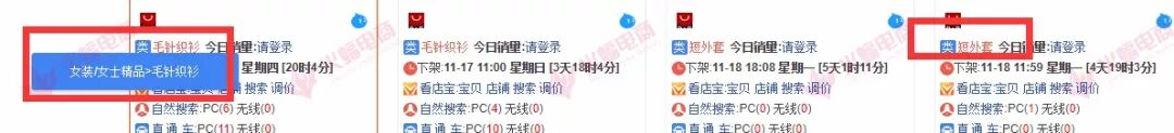 然后在淘宝的下拉框用核心搜索词进行搜索,然后可以看到排名靠前的这些商家,他们是放在什么类目