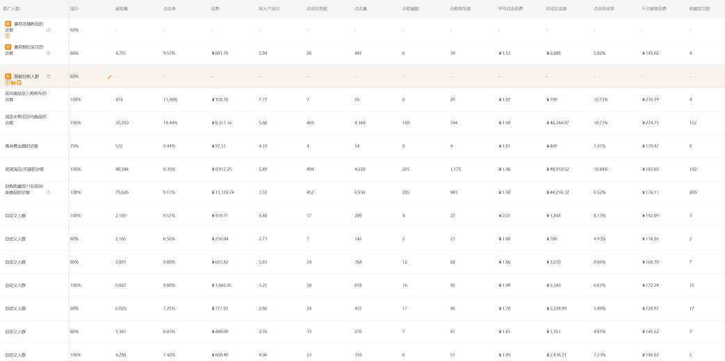 d、设置关键词及人群溢价。我一般都是在直通车测试阶段完成的。关键词的出价规律,是遵循上面提到的制衡比例来的分配的。我们出价的高低以及关键词人群的加减,都会看对应的roi数据进行调整优化。