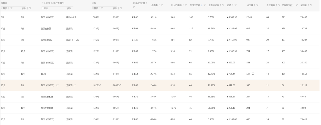目前已经处于爆款的衰退期,按照前面对应的操作roi阶段继续优化投产为主。但是考虑到目前直通车是盈利状态加上库存充足,所以在保证一定的投产数据下还要尽可能的兼顾直通车的成交量,访客数为次要的原则来进行优化的,我的大概想法这里总结分享下: