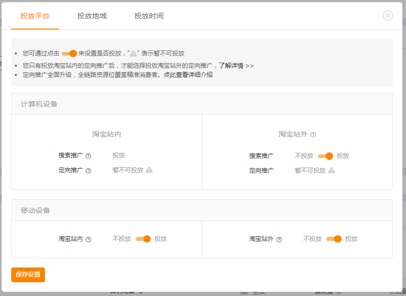 ⑵投放平台,我们只投放站内无线端,不投站外。因为现在大众逛淘宝基本都是通过无线端去逛了。